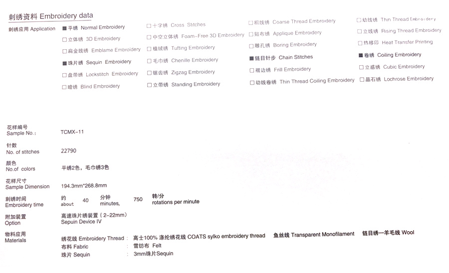 卷繡所帶來(lái)的立體感細(xì)致而立體,在制作卷繡時(shí)通過選用芯線及包線的顏色來(lái)搭配設(shè)計(jì),芯線和包線的空間比例有四種可供選擇,高精準(zhǔn)的卷繡裝置可做出精致的立體包邊效果,為繡花添加更多設(shè)計(jì)元素。