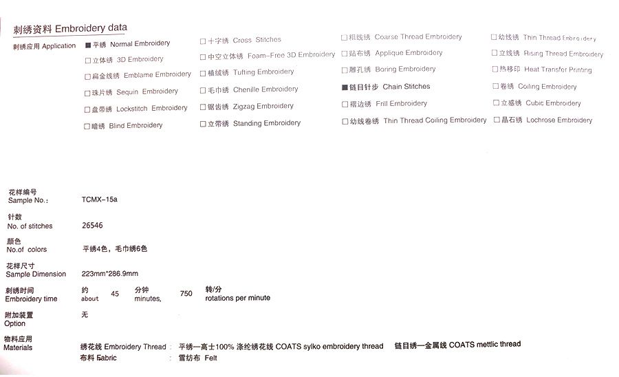 鏈目繡是一 種仿鎖鏈的效果,形如連在一 起的成串鐵環,對稱的飛馬采用了鏈目繡,既具有繡品手感柔軟之特點,又能大幅減少針跡密度1從而節省生產時間,提高生產效率。