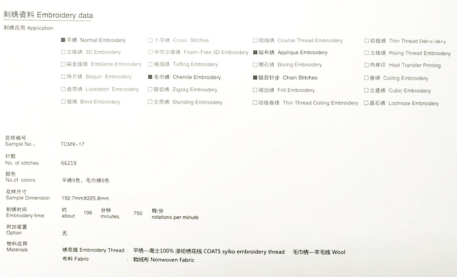毛巾繡通常包含兩大元素: (1)毛巾繡,以線圈直立模式顯示,適合較大面積及需要突出層次感圖案; (2)鏈目繡,多應用于輪廓、字母組合,以營造更細膩外觀。營造出在3層不同材質不同顏色的布料上作毛巾繡效果,具有超強層次感、立體感。另精致的平繡及炫麗的鏈目繡為傳統毛巾繡徽章添加更多設計元素。